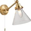 - Satin brass effect metalwork with clear ribbed glass diffuser