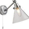 - Polished chrome metalwork with clear ribbed glass diffuser