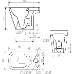• Distance from soil pipe spigot to wall: 205mm