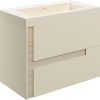 - Unique design with handleless doors and drawers offering a contrast of finishes