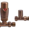 Round Thermostatic Brushed Bronze Radiator Valves – Corner